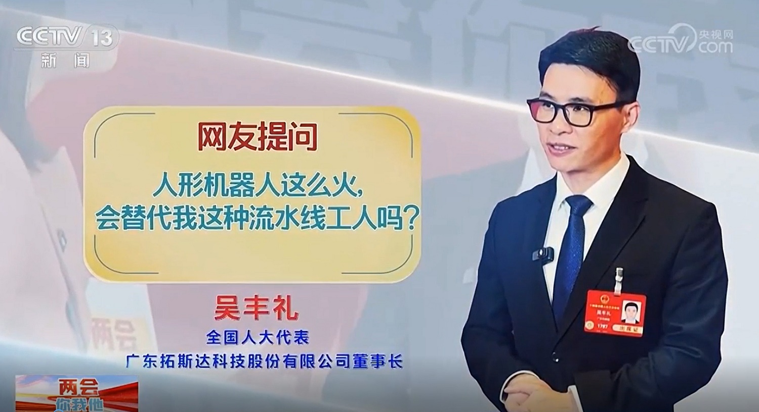 全國(guó)人大代表、拓斯達(dá)董事長(zhǎng)吳豐禮:研發(fā)機(jī)器手,是希望制造業(yè)工人不再受傷